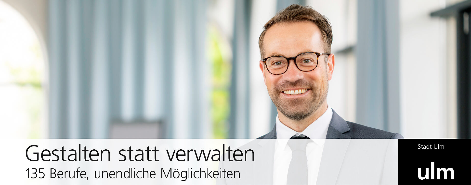 Unsere Stadtverwaltung ist so stark wie die Gesamtheit ihrer Mitarbeiter*innen (m/w/d). Werden Sie Teil unseres Teams und gestalten Sie Ulm aktiv mit.